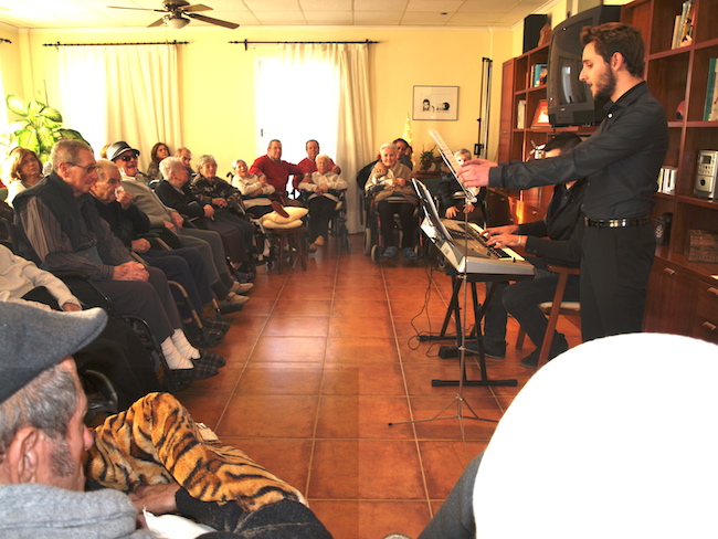 La Navidad se coló en la residencia El Molino de Santiago de la Ribera. Con un concierto lírico celebraron los abuelos las fiestas navideñas, acompañados por los familiares y amigos que se acercaron a disfrutar del concierto lírico que ofrecieron para ellos el cantante Ismael Cerezuela y Javier Alcaráz al teclado.