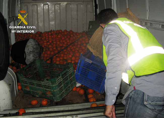 Sorprendido con 700 kilos de naranjas robadas para mercadillos