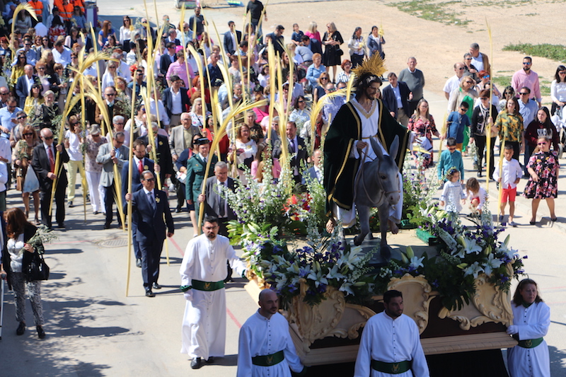 La procesión matinal del Domingo de Ramos volvió a llenar las calles de San Pedro del Pinatar, este año con la imagen de Jesús Triunfante como novedad, integrándose así ambas procesiones.