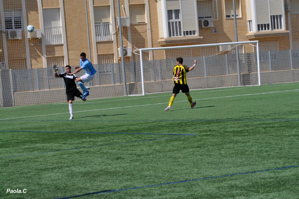 El encuentro fue un monologo del Soho Mediterráneo, un equipo bien plantado en el campo que supo mover el balón cansando a los celestes que veían como el equipo local acosaba la portería de Jareño (1) una y otra vez. El primer gol llegaría en el minuto 9 en un exceso de confianza de la defensa ribereña. Pasado unos minutos, en uno de los pocos ataques del Riber, un defensor local toca con la mano y el colegiado Vera Ruiz decreta penalti. Desgraciadamente Adrian Sanchez (4) erra el tiro y el meta local ataja el chut centrado del defensa. No sabemos que podría haber ocurrido con el empate. Pero el caso que la tónica dominante de los locales continuó y con un tiro desde fuera del área pegado al palo derecho del portero se fraguó el dos a cero. El bueno de Jareño estuvo bastante nervioso por el debut imprevisto y quizás falló más de lo previsible pues este jugador ha mejorado en los últimos tiempos. Casi finalizada la primera parte, en un lance totalmente involuntario, Sergio Sánchez (8) recibe una patada en el labio que le deja fuera del partido. En su lugar saldría Choche. Pino modifica la defensa y adelanta a Adrián (4) al centro del campo dejando en su puesto al recién incorporado Choche. El Riber seguía sin tocar el balón con criterio. Quiyo (10) no se ofrecía y prefería devolver toda bola que le llegaba. Eduardo (11) es un buen jugador y lo intentó pero por su juventud le falta, lógicamente, experiencia en este tipo de partidos. Adrian (4) envió algunos buenos balones a los delanteros que tampoco estaban finos. Suso (7) muy bien marcado por los defensores mediterráneos, no tuvo acceso al gol, como en otras ocasiones.  El gallego se desfondó peleando con la zaga contraria, como nos tiene acostumbrados pero no tuvo acierto de cara a la puerta contraria.