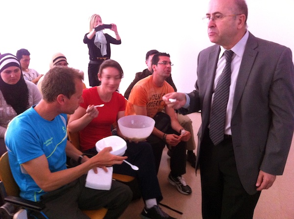 «Cada vez me gustan más los encuentros con los jóvenes y compartir con ellos mi experiencia, pero no voy a volver a la vela olímpica», aseguraba el tripulante del Team Telefónica en la Volvo Ocean Race 2011-2012, durante un encuentro en el CAR organizado por la Consejería de Educación, Formación y Empleo, y la Volvo Ocean Race. Emociones en alta mar, aprendizaje y convivencia, la elección de un modo de vida en muchas ocasiones al límite físico y emocional son algunas de las vivencias del regatista cartagenero, que mostró a los estudiantes el ligerísimo equipaje que deben llevar si quieren dar la vuelta al mundo en un barco de vela. Diego preparó también, a la vista de todos, la comida habitual a bordo, una especie de pasta elaborada con agua caliente que aporta los nutrientes suficientes. Incluso el director general de Planificación y Ordenación Educativa, Carlos Romero, se animó a probarlo. Habituado a sobrevivir en situaciones adversas, a Diego no le asustan las dificultades económicas que puede presentar la crisis. «Es un problema para la vela, porque resulta mucho más difícil encontrar patrocinadores», señala el deportista. «Es fundamental para la vela que los jóvenes se enganchen a la afición de navegar», afirma Diego, quien asegura que «el Mar Menor es ideal para navegar, con su ola corta, pero es que a pocos metros tienes el Mediterráneo».