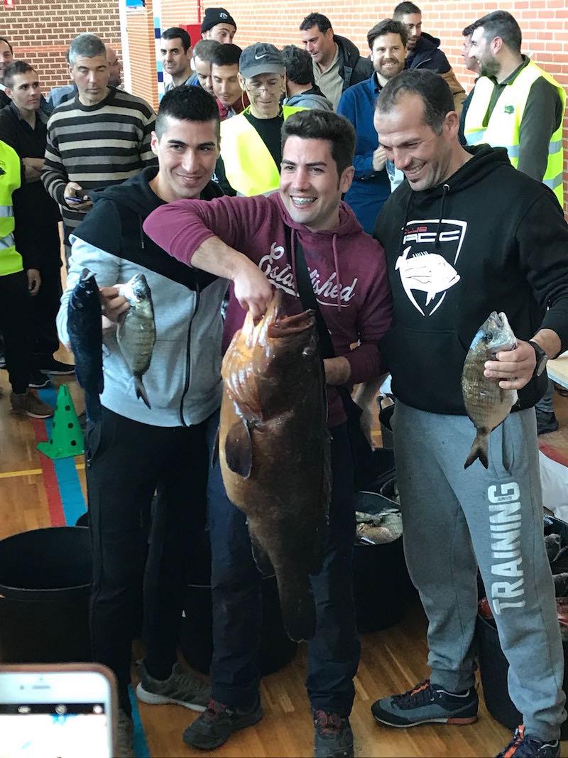El equipo ganador de la modalidad en embarcación, con la gran pieza de la Quedada.