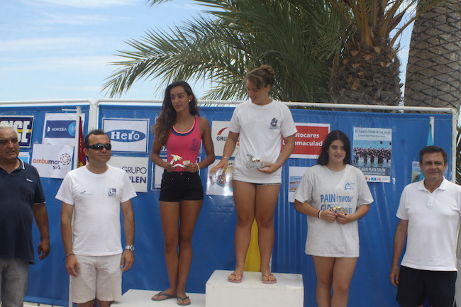 Alba Ramos López, de la AD Ancora, fue la primera en subir al podio absoluto femenino, al imponerse con 21:59 min. María José Corbalán, del CN Alcantarilla fue segunda con 24:09 min. seguida de Pilar Martin con 28:56 min.