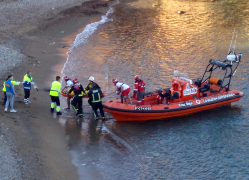 El desembarco de la víctima en la playa de Cabo de Palos, desde donde fue trasladada al hospital.