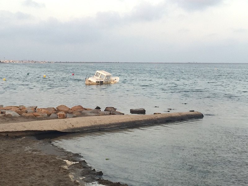 Trabajos para la extracción de los ‘muertos’ de los fondeos ilegales de barcos. Se calcula que hay más de 3.000 embarcaciones amarradas sin control en el Mar Menor.