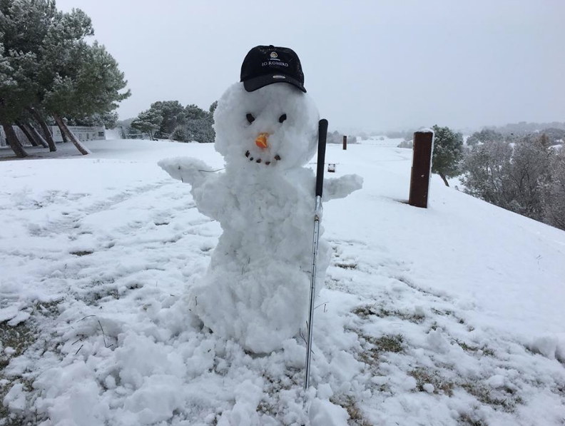 Muñeco de nieve en el campo de golf de Lo Romero. Foto:Lo Romero Golf