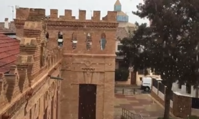 El castillo del Barón de Benifayó, en San Pedro del Pinatar, ha vuelto a recibir los copos de nieve, como pocas veces en su historia. Foto: Marcos Gracia.