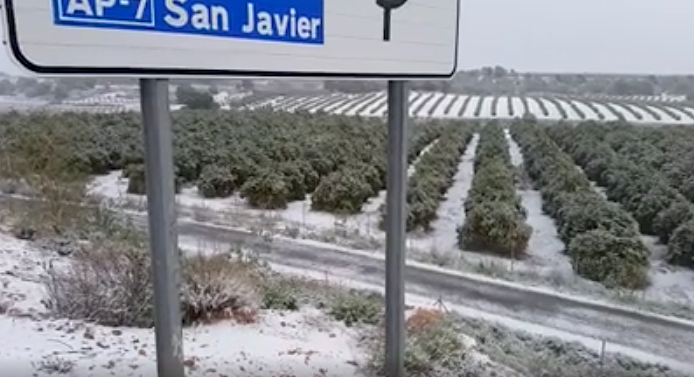 Hacía una década que la nieve no visitaba el Mar Menor y esta mañana de miércoles, 18 de enero, ha vuelto a la comarca costera. Los copos han caído con mayor intensidad en la costa norte, cubriendo localidades como Pilar de la Horadada, aunque también ha provocado la sorpresa de los vecinos en San Pedro del Pinatar, San Javier y Santiago de la Ribera, donde el sol intermitente y la lluvia han impedido que cuaje en todos los lugares.