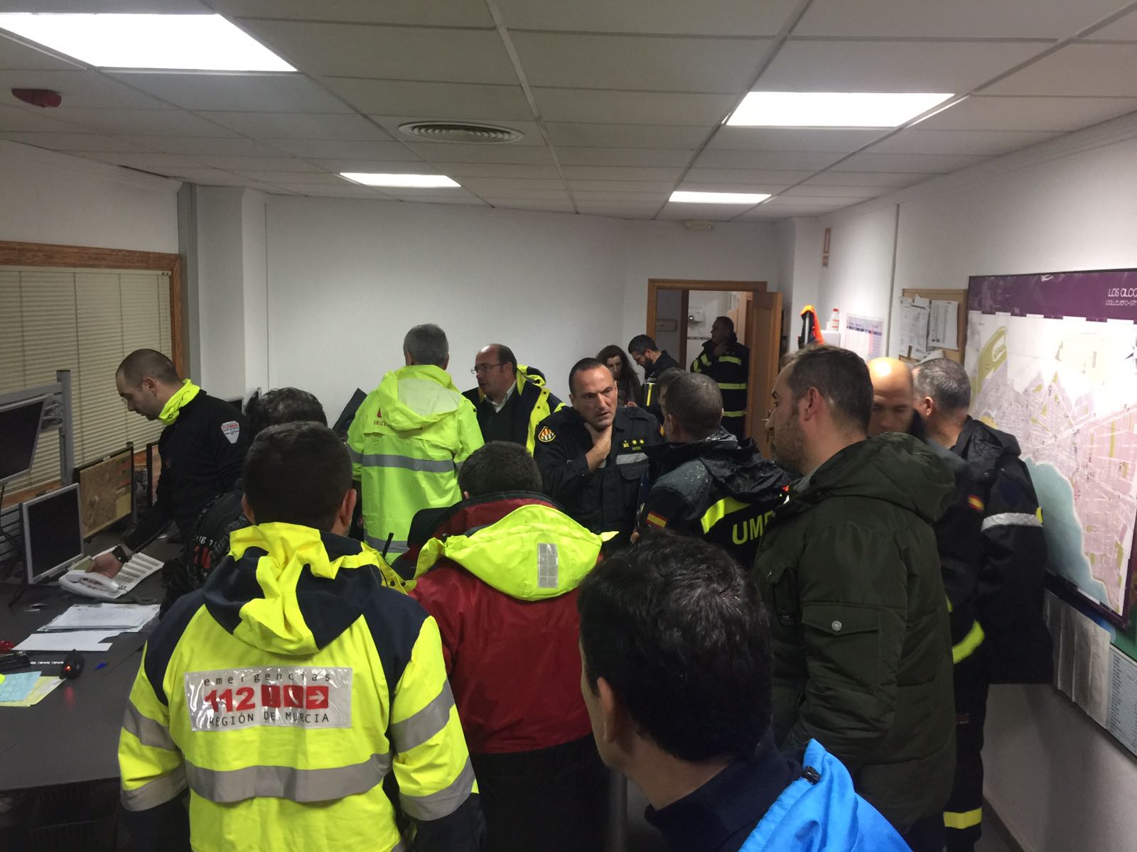 Una noche de intenso trabajo para los operarios de Protección Civil y los agentes de la Policía municipal de la comarca del Mar Menor. Anoche preparando las sucesivas salidas desde el Centro de Seguridad de Los Alcázares.