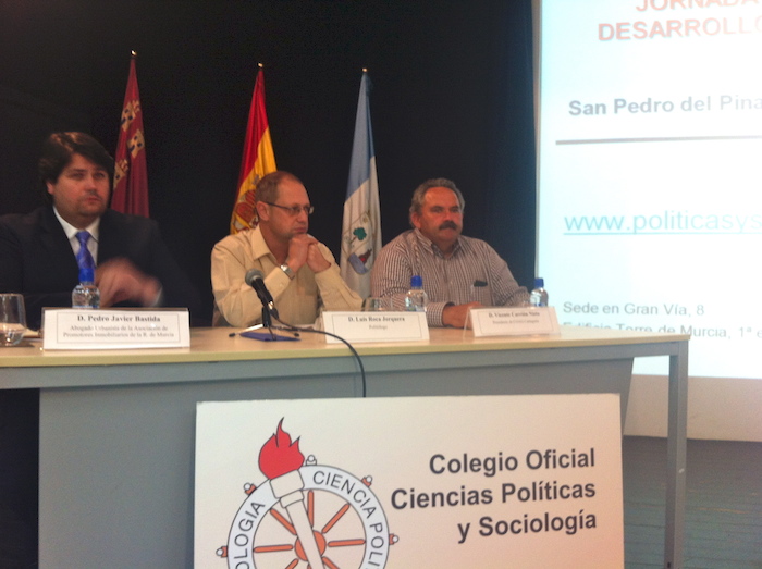 El portavoz de los promotores inmobiliarios defendió que «entender el medio ambiente sin el desarrollo urbanístico no es hablar de medio ambiente». «La promoción inmobiliaria influye en el empleo, en el turismo y debe influir en el medio ambiente», dijo Bastida, quien cree que «el medio ambiente debe respetar el desarrollo urbanístico». Denunció que «el promotor tiene que enfrentarse a 72 normas urbanísticas: en San Javier las normas subsidiarias, en otros otras normas, por lo que los promotores se encuentran con una enorme inseguridad jurídica». Insistió en que «no se asocie medio ambiente con paralización porque entonces no es desarrollo sostenible».