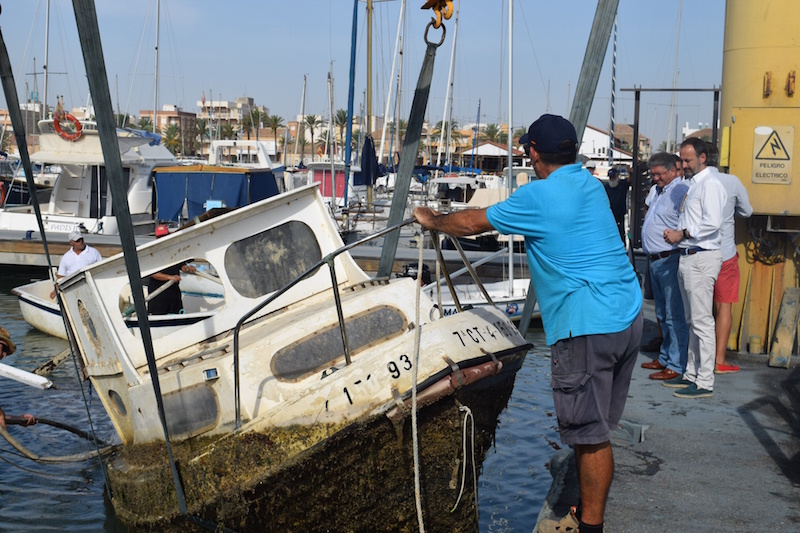 El consejero de Empleo, Universidades, Empresa y Medio Ambiente, Javier Celdrán, supervisó los trabajos de retirada de tres embarcaciones, una labor que se desarrolló en la playa Carrión de Los Alcázares. En concreto, está previsto extraer dos embarcaciones de pequeña eslora que estaban semihundidas en la playa y una tercera de entre cinco y seis metros de eslora que se encontraba hundida a unos 70 centímetros de profundidad y a 30 metros de la orilla.
