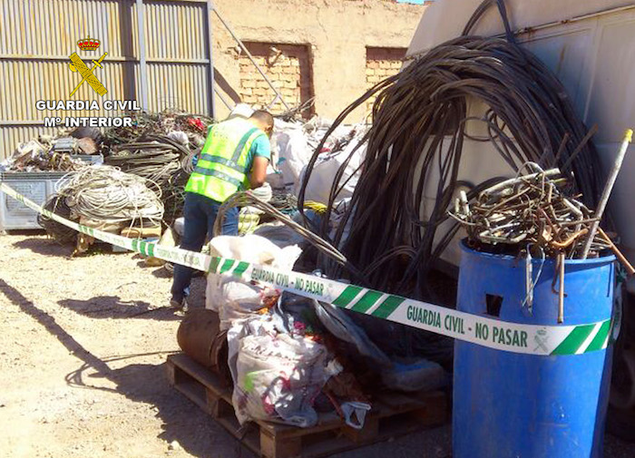 El negocio de la chatarra y, sobre todo, del cobre, no deja de dar problemas a la Benemérita. La Guardia Civil de la Región de Murcia ha desarrollado la ‘operación COPPER’ enmarcada en el ‘Plan de respuesta policial al robo de cableado de cobre’, que, hasta el momento, se ha saldado con la recuperación en Fuente Álamo de 9.100 kilos. del denominado oro rojo, el cual había sido sustraído, y con la detención de siete personas por delitos de robo con fuerza y receptación.