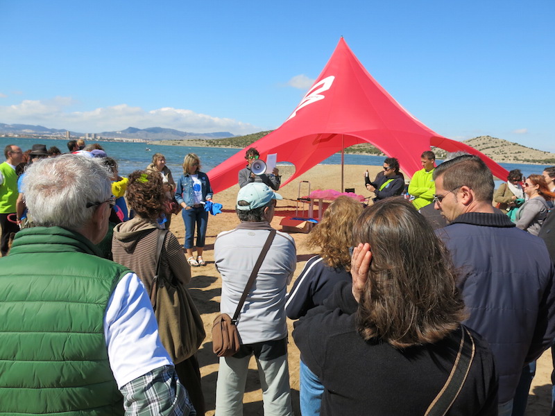 Uno de los portavoces del Pacto del Mar Menor, Óscar Alcaráz, leyó el manifiesto que reclama medidas contundentes para recuperar la laguna y erradicar sus fuentes de contaminación. El biólogo Jaime Bernardeau, del Instituto Español de Oceanografía, ofreció una charla a pie de playa sobre las plantas marinas del Mar Menor. Los asistentes pudieron escuchar además las explicaciones sobre las artes de pesca tradicionales de la laguna por el biólogo de la Cofradía de Pescadores, Manuel Trives.