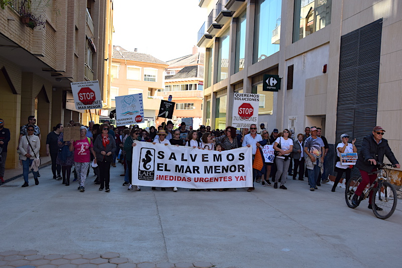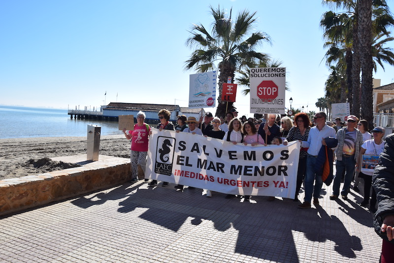 «Hoy hemos marchado juntos por dos razones: el Mar Menor y las inundaciones», afirmó el portavoz de la EcoCultura, Antonio Zapata. «Si no estamos juntos no tenemos futuro», afirmó el historiador, quien ha encabezado esta mañana, domingo, la marcha vecinal para mantener la reivindicación de soluciones para evitar nuevas riadas.