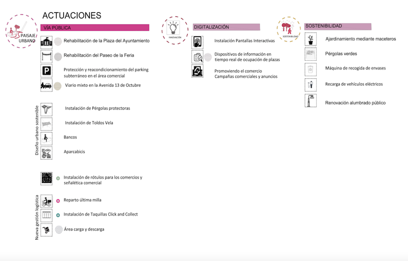 Para fomentar el consumo local, se creará una zona para vehículos de reparto de última milla y taquillas de tipo ‘click&collect’ para la recogida de artículos adquiridos por internet a los comercios de la zona. El objetivo es «mejorar la experiencia de compra incluso en aquellos visitantes cuyo horario no es compatible con el de la zona comercial», según informa el proyecto.