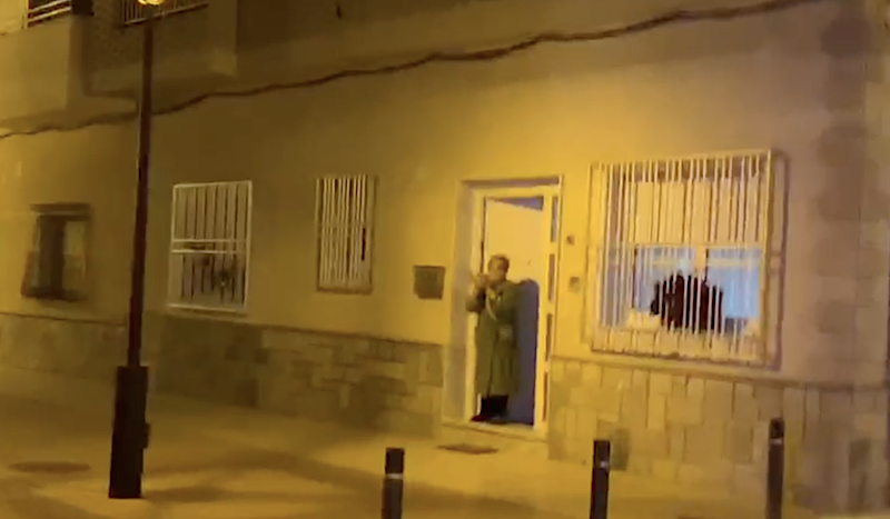 A pesar de la baja calidad de la imagen, ya que es un pantallazo del video, se puede ver a una mujer que salió a la puerta para aplaudir la iniciativa.