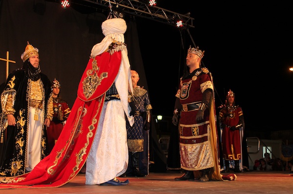 Soldados cristianos no pudieron frenar el ataque de los piratas berberiscos en plena playa. Lucha de sables, danzarinas del vientre y fuegos piroacuáticos asombraron a los asistentes en una de las citas más esperadas de las Incursiones Berberiscas. La noche anterior, tuvo lugar el pregón de Alfonso Gálvez, el presidente de la Federación de Asociaciones de Moros y Cristianos de Murcia. La representación de la entrega de llaves de la ciudad de Murcia llenó el auditorio de las peñas huertanas.