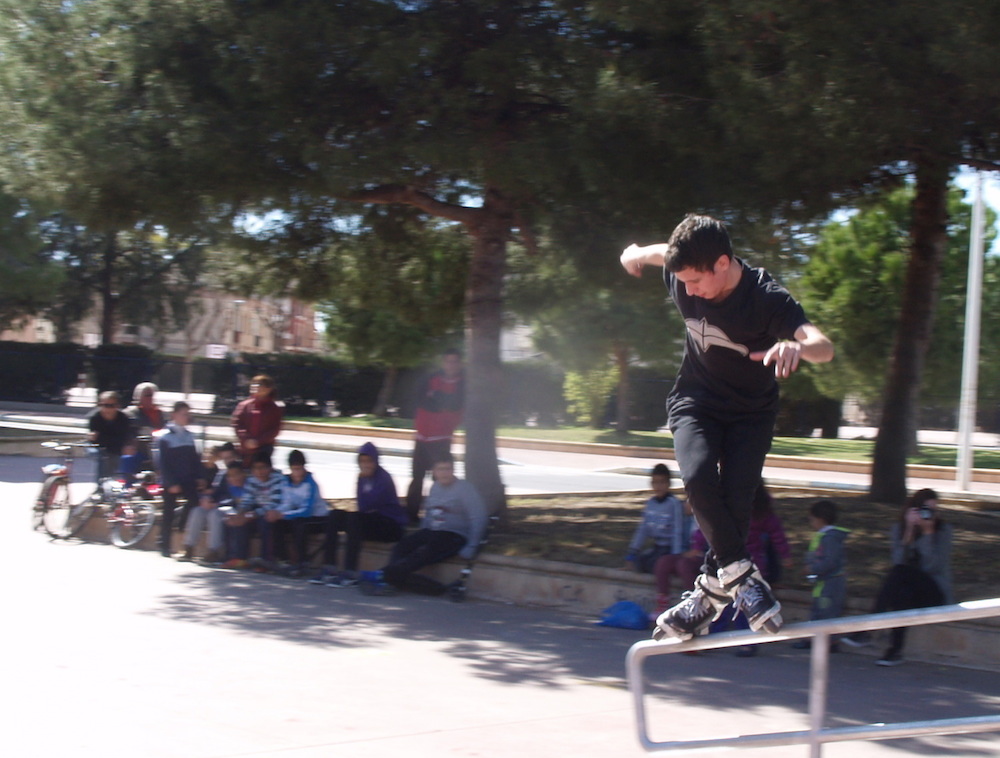 El campeón de España de Roller, Félix Caballero, estrenó el skatepark, junto a otro acróbata de las ruedas sobre el asfalto, el alicantino Carlos López, durante una exhibición a la que se animaron aficionados de todas las edades.