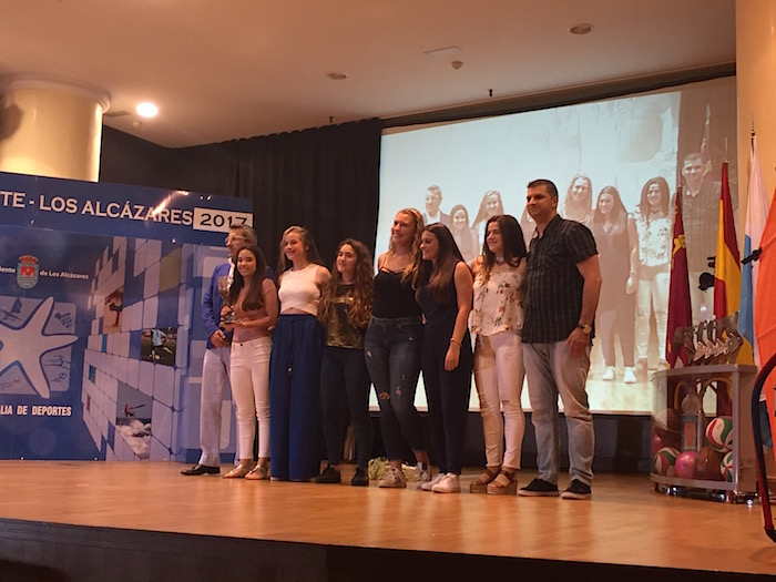 Las deportistas del equipo de voleibol femenino recogieron el premio de manos del concejal José María Cano.