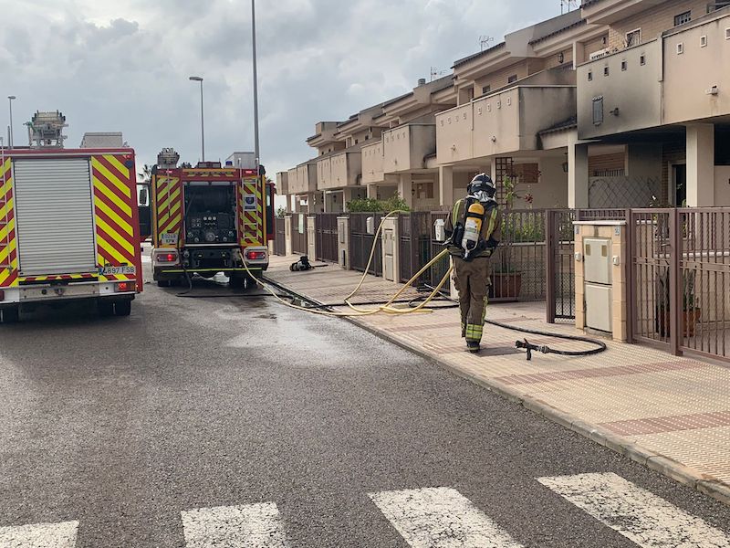 A las 9,15 horas de esta mañana, viernes, ha entrado la llamada de alerta en el servicio de emergencias 112 de Los Alcázares. Unidades de Protección Civil y de la Policía local han acudido a la urbanización Nueva Ribera, donde un dúplex ardía en llamas. Los bomberos del Parque de Los Alcázares han tenido que abrirse paso con un ariete en la vivienda, que ha resultado calcinada por completo tanto la planta de abajo como la superior, donde la mujer se encontraba ya en el balcón huyendo del intenso humo.