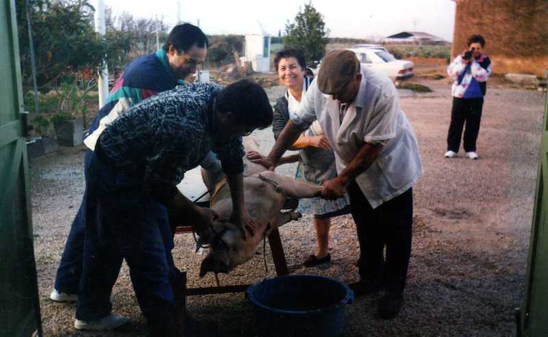 La matanza del cerdo en diciembre, una tradición ya extinguida en las casas. Esta escena es de 1995.