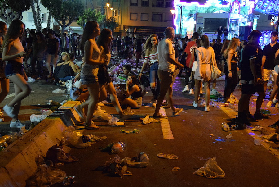 Apenas transcurren dos horas entre una escena y otra, la del espectáculo de masas y la ciudad basurero. Son la cara y cruz de los conciertos de masas veraniegos, que atraen a miles de jóvenes, que al cabo de la madrugada dejan tras de sí un rastro de toneladas de basura e índices de alcoholemia.