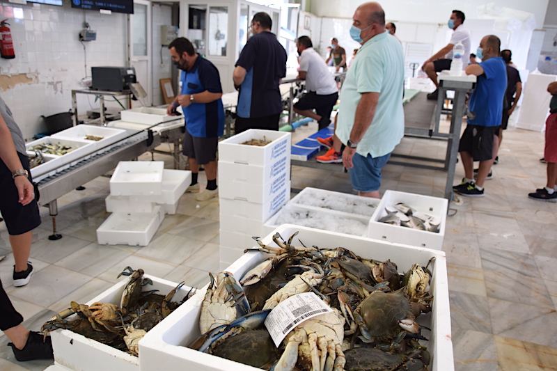 El cangrejo azul llena las cajas de la subasta de Lo Pagán. Este año podría duplicar el volumen de capturas, alcanzando los 16.000 kilos.