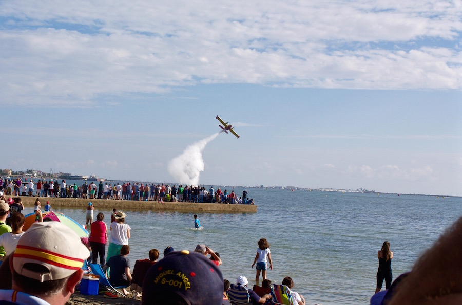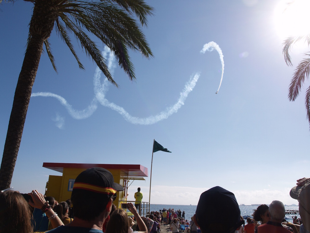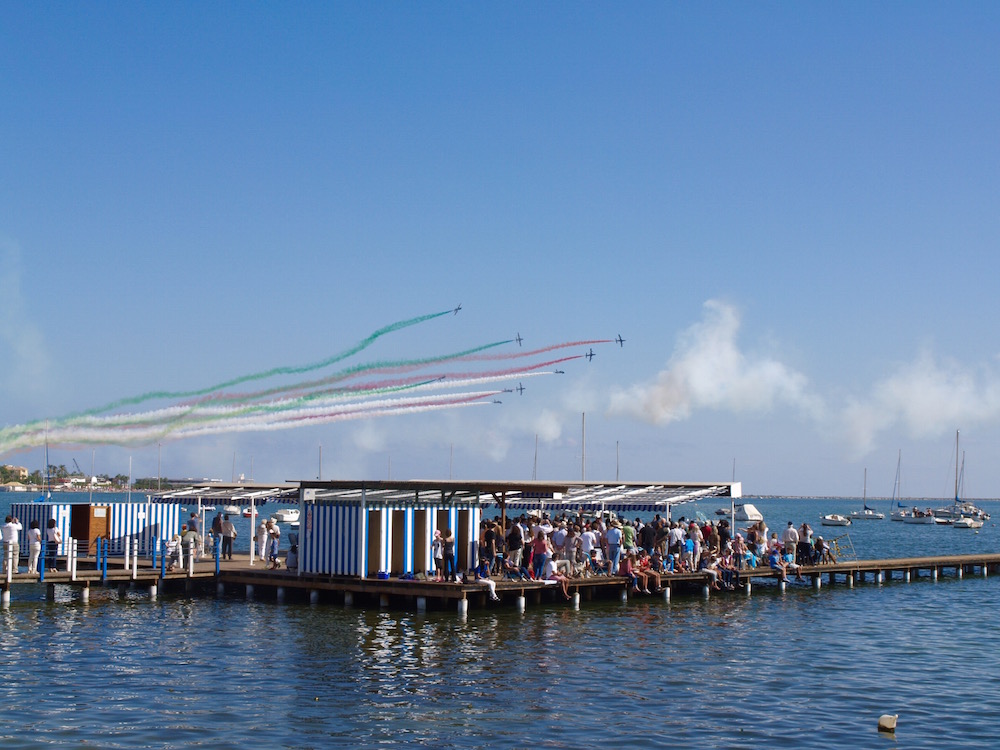 Desde la orilla del Mar Menor, el público pudo seguir las impresionantes pasadas del Eurofighter y el F-18, aunque la mayor ovación se la llevó el Harrier, que realizó una demostración de su parada en el aire, para despegar después hacia las alturas. Frente a la potencia de los modernos aviones, la nostalgia de los Dornier y Bucker simbolizó un homenaje a los vuelos de principios del siglo XX en los albores de la aviación.