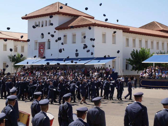 El jefe del Estado Mayor del Aire, el general Francisco Javier García Arnaiz, presidió el acto de relevo de mando en la AGA, ya que el coronel Emilio Gracia Cirujeda deja la dirección de la base militar, en la que ha sido sustituido por el coronel Juan Pablo Sánchez de Lara. La plaza de Armas ha vuelto a convertirse en el escenario de este acto simbólico, en el que después de recoger los Despachos de oficial, los alumnos responden arrojando sus gorras al aire tras la orden de ‘¡rompan filas!», que en esta ocasión la dio el ministro Morenés.
