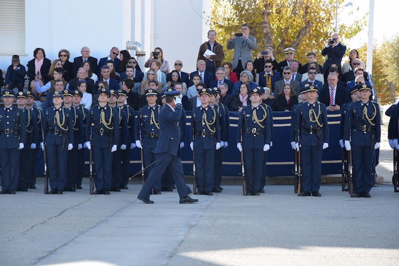 Entre los invitados se encontraban también los alcaldes de Torre Pacheco, Antonio León, y de San Pedro del Pinatar, Visitación Martínez. Tras los fuertes temporales que han dejado riadas y vientos en la costa, el sol hizo sacar los abanicos en la tribuna de invitados, que llenaron los familiares de los nuevos alumnos en su día más emotivo del inicio de su carrera militar. Tras la ofrenda a los caídos, sonaron las salvas de pólvora y, como cierre al acto festivo, la patrulla Águila dejó su bandera de humo de colores en el cielo. Como despedida a sus compañeros fallecidos, los Águila trazaron su espectácular rotura en el cielo.
