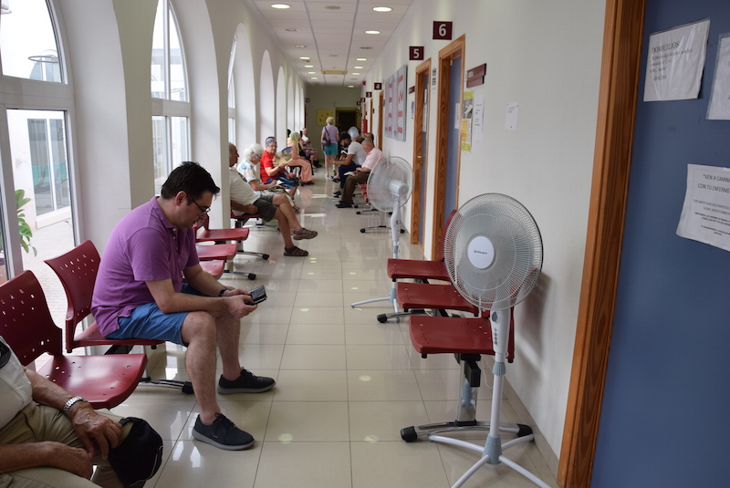 Sudores, mareos y abanicos abundan estos días en el consultorio médico de Santiago de la Ribera. La avería del dispositivo de aire acondicionado provoca desde hace ya 15 días una situación difícil de soportar tanto por parte del personal como de los pacientes. Algunos sufren mareos, porque los ventiladores no son suficientes con las altas temperaturas del verano.