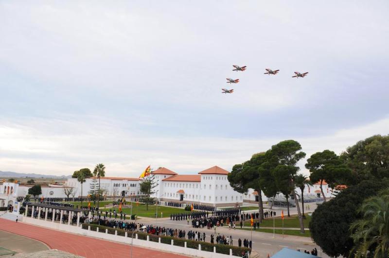 Cinco reactores C-101 sobrevuelan el recinto militar de Santiago de la Ribera al finalizar el acto.