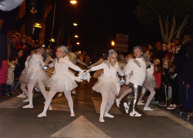 Los nervios de los niños en la espera se vieron compensados con la espectacular llegada de los Reyes Magos de Oriente al muelle de Santiago de la Ribera. A bordo de un barco típico de pasajeros del Mar Menor, los magos de Oriente arribaron en la localidad costera y pisaron tierra, donde les esperaba una gran comitiva, formada por la Corte Real de damas y reina de las fiestas, con sus acompañantes, una legión de pequeñas hadas luminosas y un camino de velas, que señalaba la dirección hacia el Niño Jesús, que esperaba mirando a la playa Barnuevo, junto al Belén Marinero que este año ha vuelto a crear la Asociación de Belenistas de San Javier.
