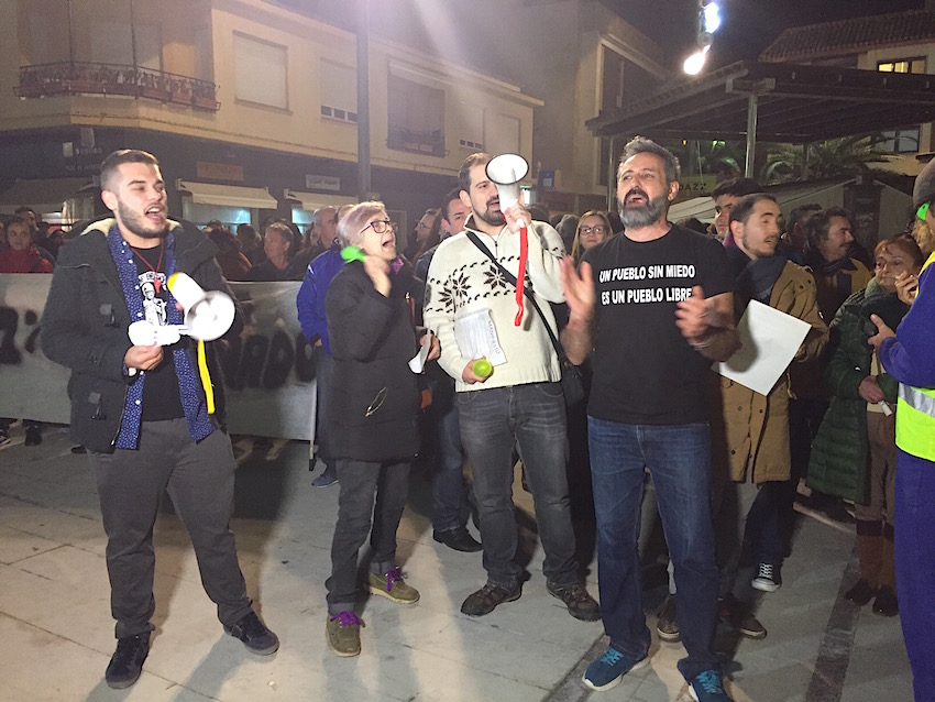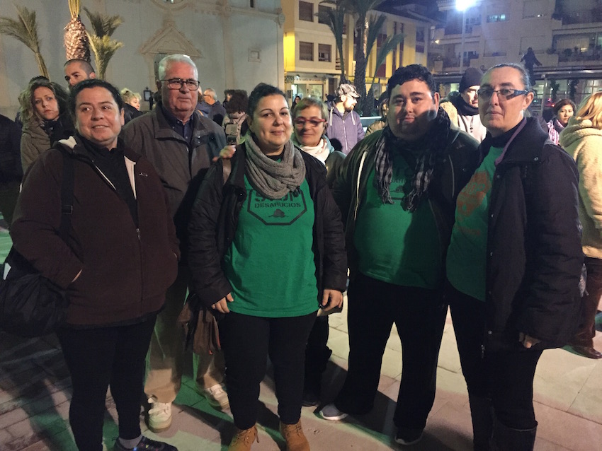 El portavoz de Ganar San Javier, Matías Cantabella, a la derecha, con algunos de los manifestantes