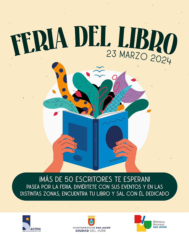 LIBROS. Sábado 24. Feria del libro de San Javier. Con la participación de escritores locales que expondrán sus obras al público. Para conocer programa completo pincha el cartel. Explanada Barnuevo. Santiago de la Ribera.