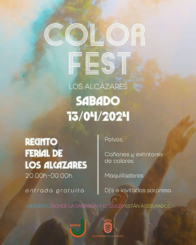 20 horas. EVENTO ESPECIAL. ´Color Fest´. Polvo, Cañones extintores de colores, Maquilladores, Dj´s e invitados sorpresa. Recinto Ferial de Los Alcázares.