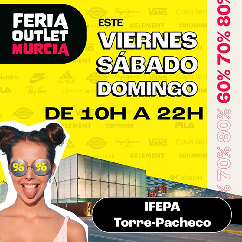 FERIAS. Feria Oulet 2024. Descuentos hasta el 80% en diferentes marcas. Viernes, sábado y domingo. Abierto hasta las 22 horas. IFEPA. Torre Pacheco.