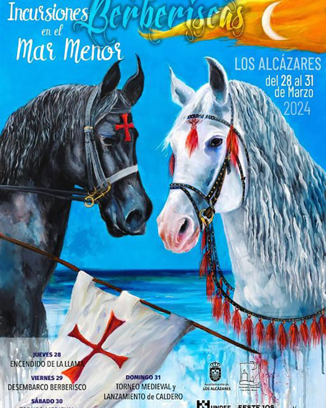 21 horas. BERBERISCOS. Gran desfile Incursiones berberiscas en el Mar Menor. Peñas festeras, berberiscas y cristianas desfilaran por la Avenida de la Libertad, acompañadas de ballets tematizados, carrozas, invitados de otros municipios y espectáculos medievales. Los Alcázares.