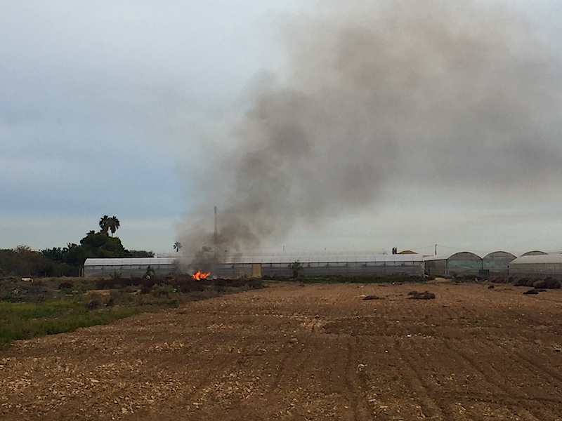 El Seprona de la Guardia Civil persigue esta práctica, que sigue siendo habitual en la zona agrícola del campo de Cartagena y Mar Menor, pero aún así se siguen viendo columnas de humo en los alrededores de la laguna, provocadas por agricultores que se evitan así tener que transportar sus restos vegetales y plásticos a un vertedero autorizado.