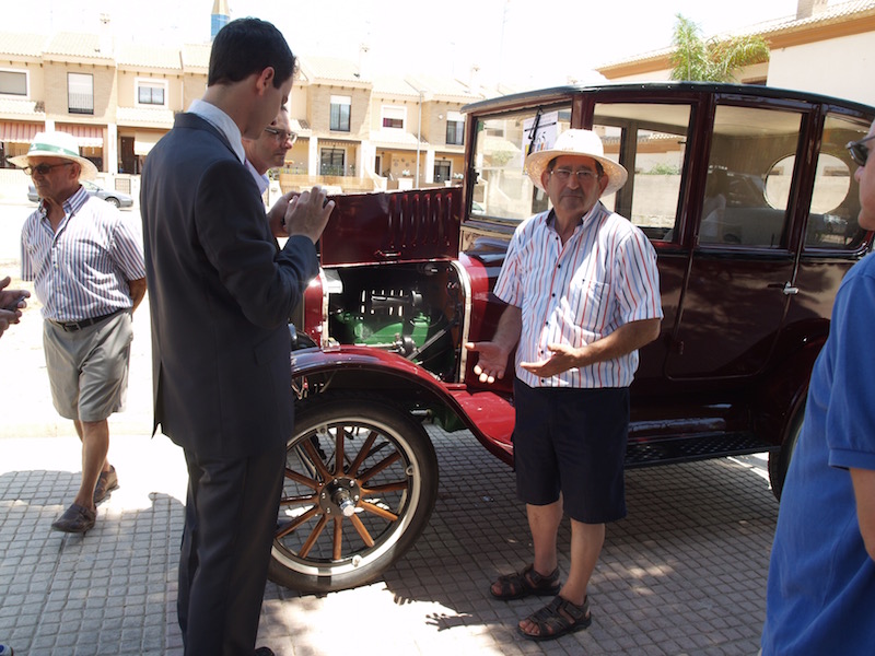 Un Ford T de 1920, el primer ejemplar que se fabricó en serie a nivel mundial, es el tesoro de Faustino Hernández, quien explicó a los visitantes el funcionamiento del viejo motor. «Es el único de España con esa carrocería», explica con orgullo. A Faustino le toca con frecuencia llevar en su vehículo casi centenario a las numerosas novias que se lo piden.