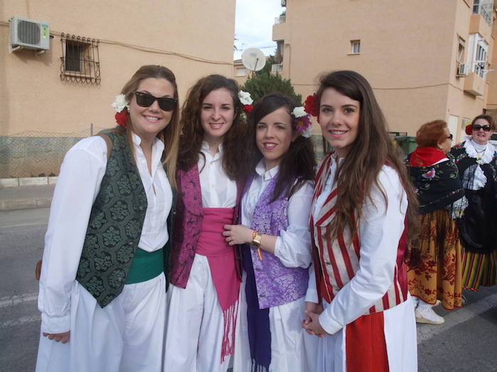 Las reinas y damas infantiles y juveniles de Santiago de la Ribera encabezaron la procesión ataviadas con los trajes típicos murcianos. Animada por una banda de música y cerrada por un grupo de jinetes a caballo, la procesión fue sumando romeros hasta llegar al paraje de San Blas donde ya se habían ubicado cientos de personas en la pinada para pasar un día de romería en el que no faltan las paellas, y las barbacoas.