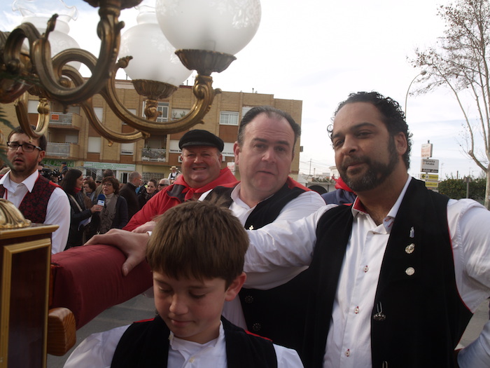 La imagen de San Blas ha vuelto a recorrer esta mañana, en romería, el tramo que separa la iglesia de Santiago Apóstol hasta su ermita en el paraje al que da nombre. Seguida por las autoridades civiles y militares y acompañada por centenares de romeros, la imagen de San Blas tardó poco más de media hora en llegar a la ermita donde se celebró una misa huertana cantada por la rondalla y coro “Santiago Apóstol”, de Santiago de la Ribera.