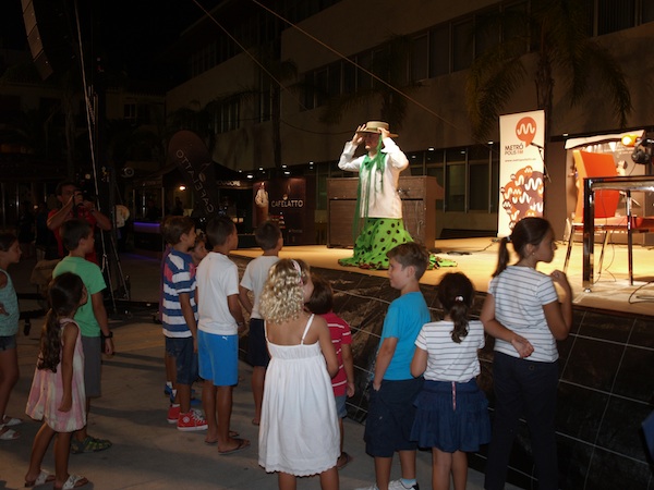 En una fiesta en la plaza patrocinada por Supercosta, el público pudo divertirse con los sketches y performances de los actores del grupo local Primer Intento. Liderados por el actor Juan Luis Hurtado, Roper, los actores rindieron tributo al teatro, a la radio de siempre (con las famosas radio novelas) y al cine (con la escena del balcón de ‘Bienvenido Mister Marshall).
