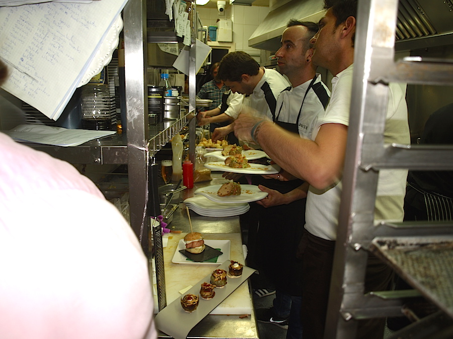 Al joven cocinero le gusta participar en estas ‘quedadas’ triangulares en cocina ajena. «Si eres cocinero de verdad, lo haces con cariño e ilusión, además de que aprendemos unos de otros», cuenta en la cocina de La Tropical, mientras los otros cocineros y pinches pasan por los flancos como en una pugna de Rossi y Lorenzo. «Yo empecé pelando patatas a los 14 años, y hasta donde llegue», sonríe en plena vorágine de la cocina.