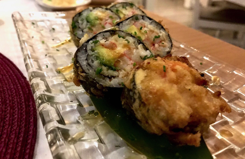 Continué con el sushi: futomaki tempurizado con cangrejo, queso cremoso y aguacate; uramaki de anguila flambeado con pepino y salmón; uramaki de tartar de atún y unos niguiris de pez limón con trufa.
