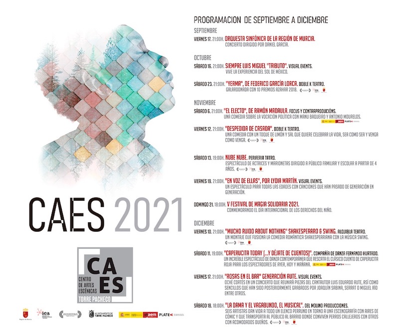 Mucha comedia para destensar el ánimo contraído por la pandemia, clásicos que resisten, música para emocionar y espectáculos para vivir en familia son las propuestas del CAES de Torre Pacheco en la reapertura de sus puertas para el último trimestre del año. Tiempo de volver a la cultura.