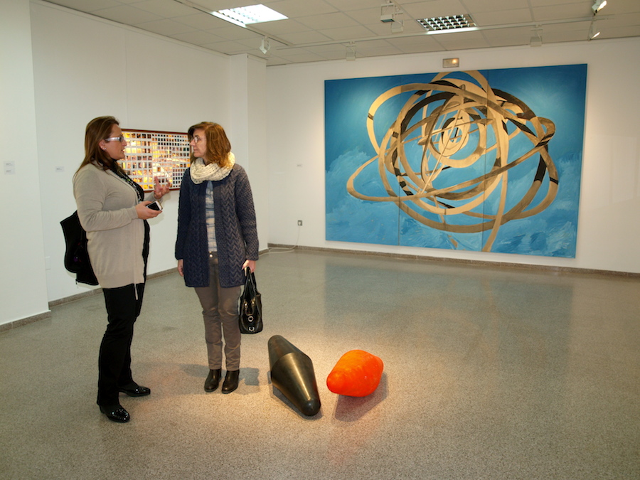 En la sala recientemente acondicionada de la Casa de la Cultura, conviven en armoniosa disposición volúmenes y óleos, fotografías e instalaciones. Se abalanza sobre los ojos ese cielo azul de Manu Muniatguiankoetxea, esa estratosfera sobre la que suspende su interpretación del Constructivismo de Rodchenko, con su maquinaria geométrica de corazón concéntrico.