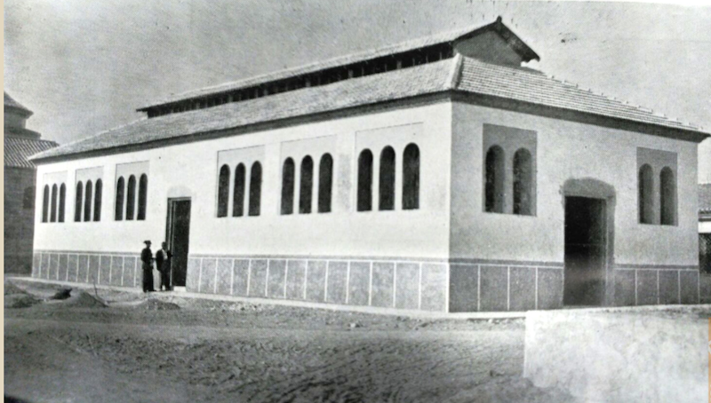 El antiguo mercado de abastos, en esparto. Abajo, fotografía del Archivo municipal del edificio.
