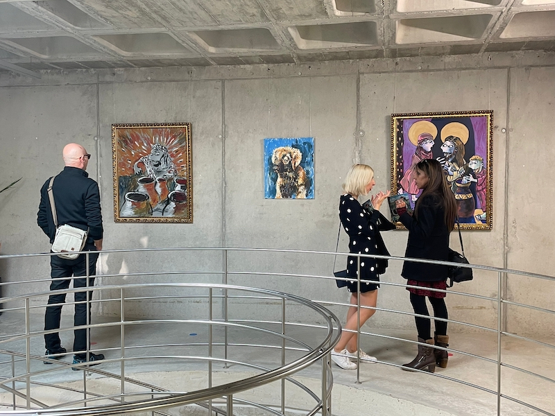 Juan Ros en la exposición que organizó en abril de 2019 en la biblioteca. La que ahora se puede ver, muetra su obra más reciente. Ya sin su presencia.
