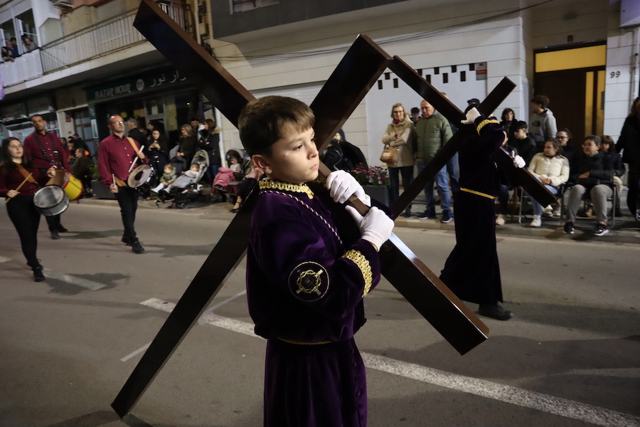 Es la procesión más larga y participativa de San Pedro del Pinatar. Una decena de hermandades y cofradías con sus tronos, cientos de nazarenos, manolas, penitentes, el tercio romano, tercios de cornetas y tambores y bandas de música salen a la calle para compartir el duelo.
